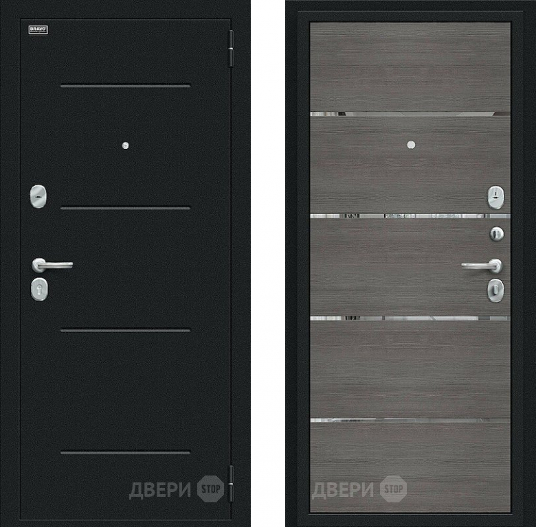 Входная металлическая Дверь Bravo Лайн Букле черное/Grey Veralinga 860х2050 мм