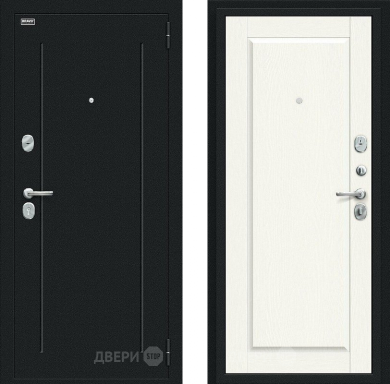 Входная металлическая Дверь Bravo Сьют Kale Букле черное/White Wood 860х2050 мм