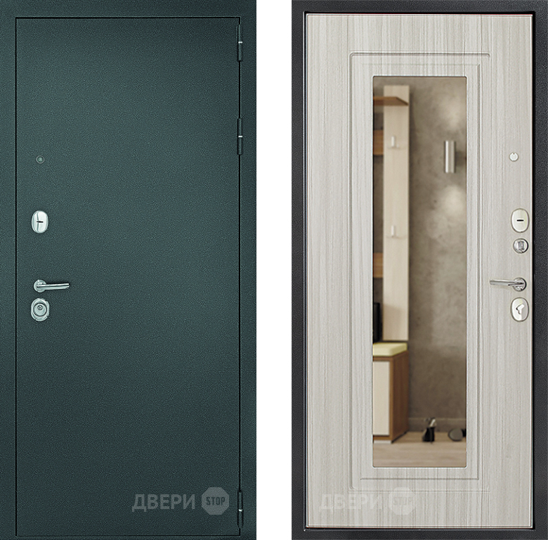 Входная металлическая Дверь Дверной Континент Рубикон Серебро Зеркало Сандал 860х2050 мм