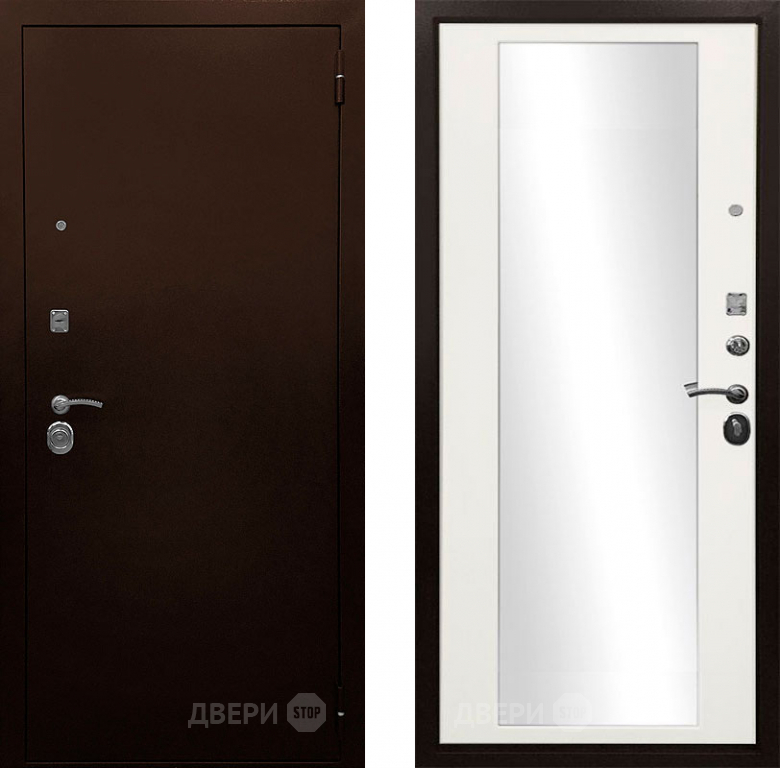 Входная металлическая Дверь Ратибор Рим 3К зеркало Белый матовый 860х2050 мм