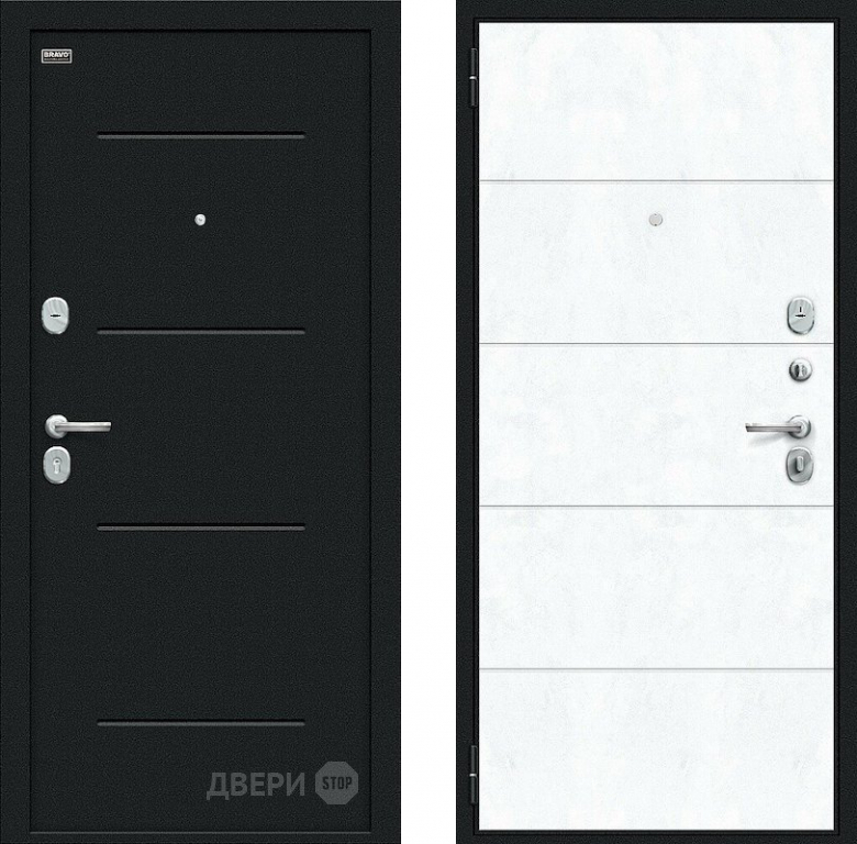 Входная металлическая Дверь внутреннего открывания Bravo Граффити-1 Инсайд Букле черное/Snow Art 860х2050 мм