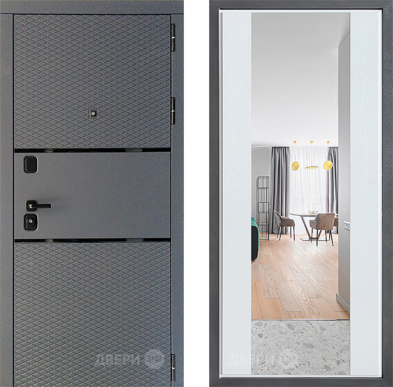 Входная Дверь Дверной континент Диамант Дизайн ФЛЗ-1 Зеркало Белое дерево 960x2050 мм