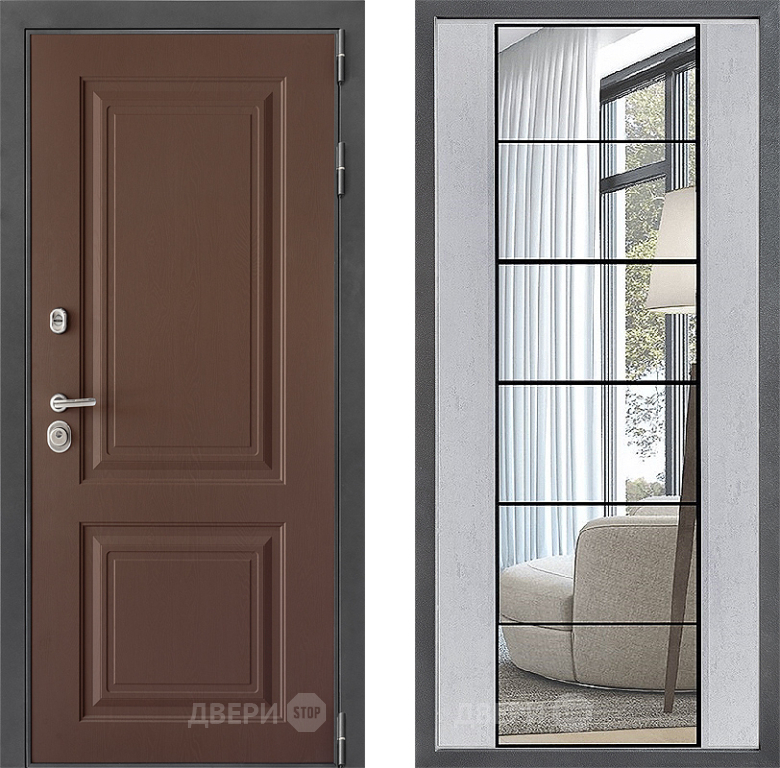 Входная Дверь Дверной континент ДК-3/729 ФЛЗ-2 Зеркало Бетон светлый 860x2050 мм