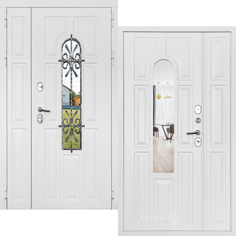 Входная металлическая Дверь Дверной Континент Лион Двустворчатая Белая 1100, 1200, 1300 * 2200мм