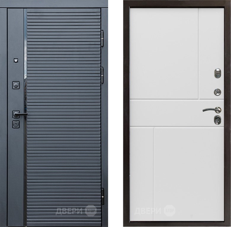 Входная Дверь Престиж Черная Линия Горизонт Бетон белый 860x2050 мм