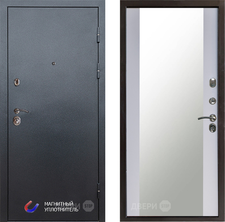Входная Дверь Престиж Графит Зеркало Белый софт 860x2050 мм