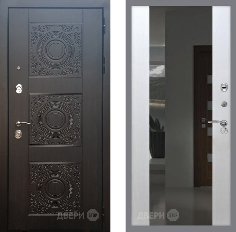 Входная Дверь Рекс (REX) 10 СБ-16 с Зеркалом Лиственница беж 860x2050 мм