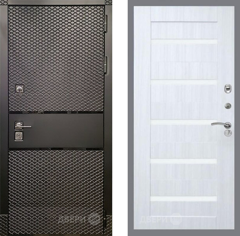 Входная Дверь Рекс (REX) 15 Черный Кварц СБ-14 стекло белое Сандал белый 860x2050 мм