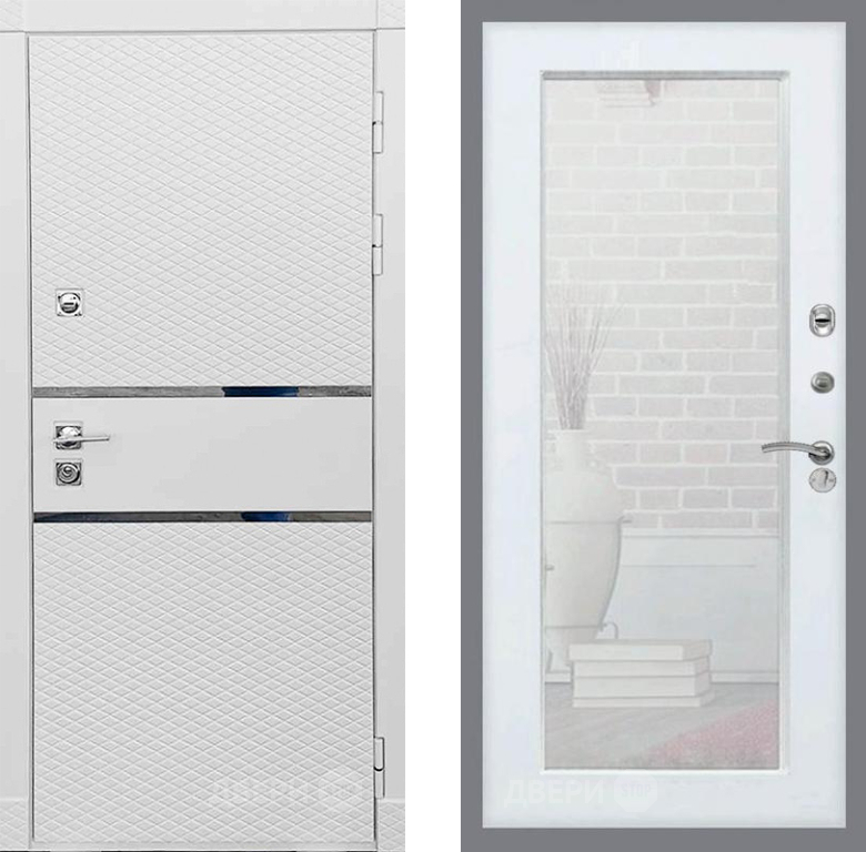 Входная Дверь Рекс (REX) 15 Силк Сноу Зеркало Пастораль Белый ясень 860x2050 мм