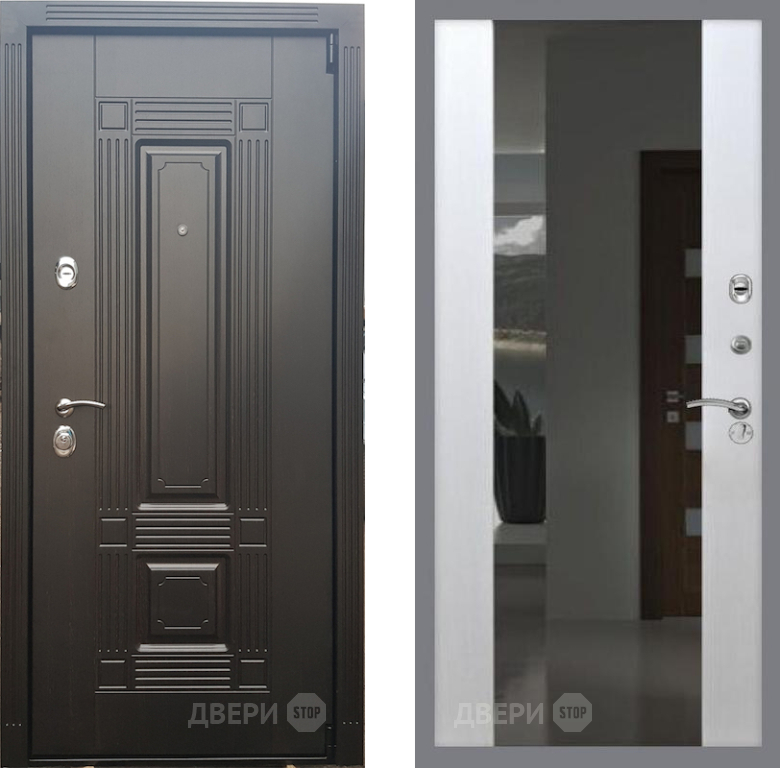 Входная Дверь Рекс (REX) 9 СБ-16 Зеркало Белый ясень 860x2050 мм