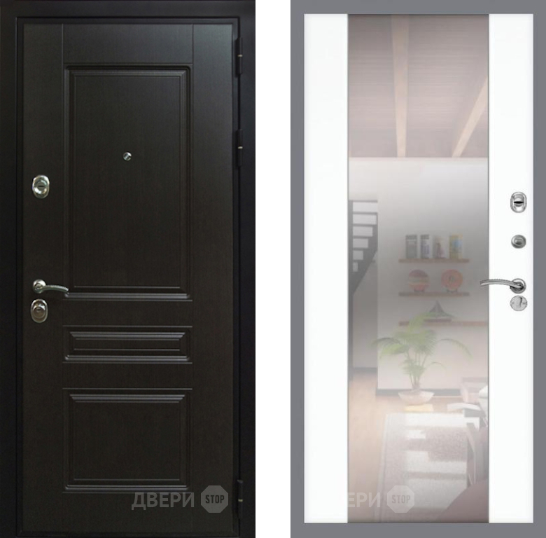 Входная Дверь Рекс (REX) Премиум-Н СБ-16 Зеркало Силк Сноу 860x2050 мм