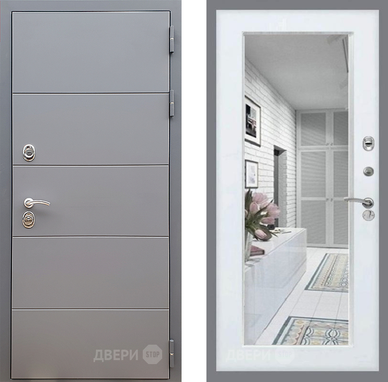 Входная Дверь Стоп АРТ ГРАФИТ Зеркало Белый ясень 860x2050 мм