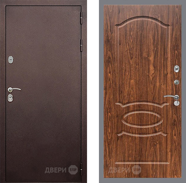 Входная Дверь Стоп КЛАССИК Медь ФЛ-128 орех тисненый 860x2050 мм