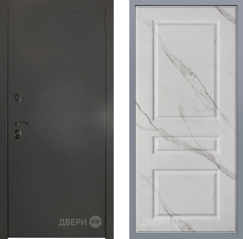 Входная Дверь Заводские двери Эталон 3к антик серебро Стокгольм Мрамор белый 860x2050 мм